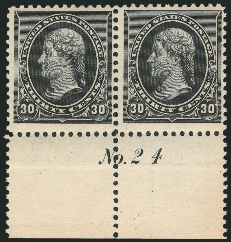 608 nh Image30c Black (228). Mint N.H. bottom plate no. 24 horizontal pair, intense shade and impression, fresh and Fine-Very Fine, a beautiful Mint N.H. plate number pair, Scott Retail as Mint N.H. singles (Image)