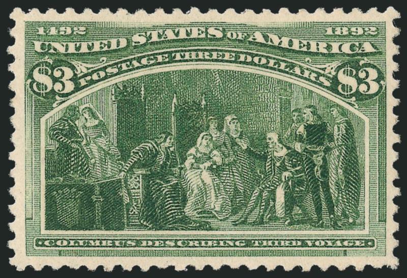 EXTREMELY FINE. AN OUTSTANDING EXAMPLE OF THE $3.00 COLUMBIAN IN ORIGINAL-GUM CONDITION.