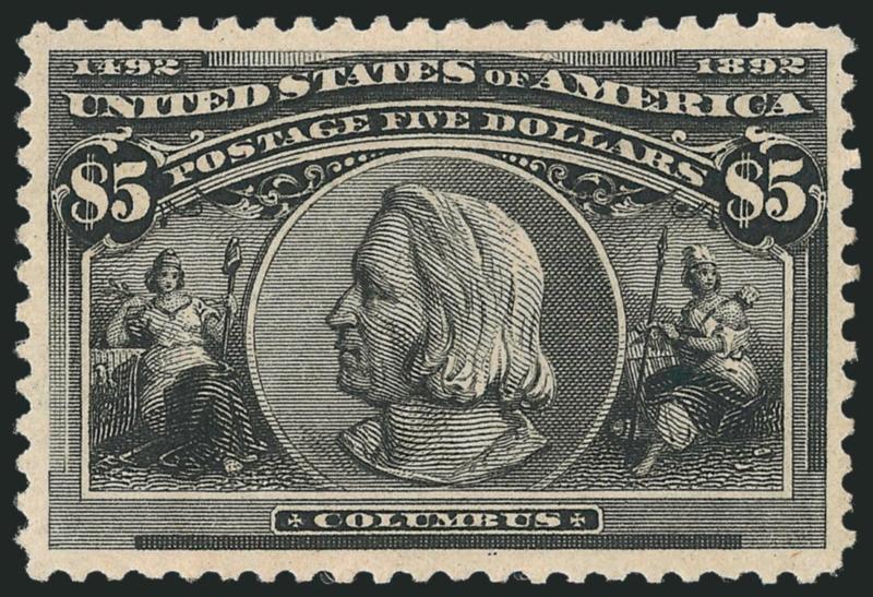 EXTREMELY FINE. A BEAUTIFUL ORIGINAL-GUM EXAMPLE OF THE $5.00 COLUMBIAN ISSUE.