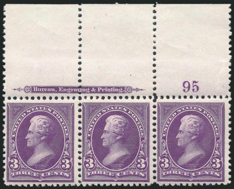VERY FINE APPEARANCE. THIS RIGHT IMPRINT AND PLATE NUMBER STRIP OF THREE OF THE 1894 2-CENT CARMINE TYPE III IMPERFORATE VERTICALLY IS UNIQUE.