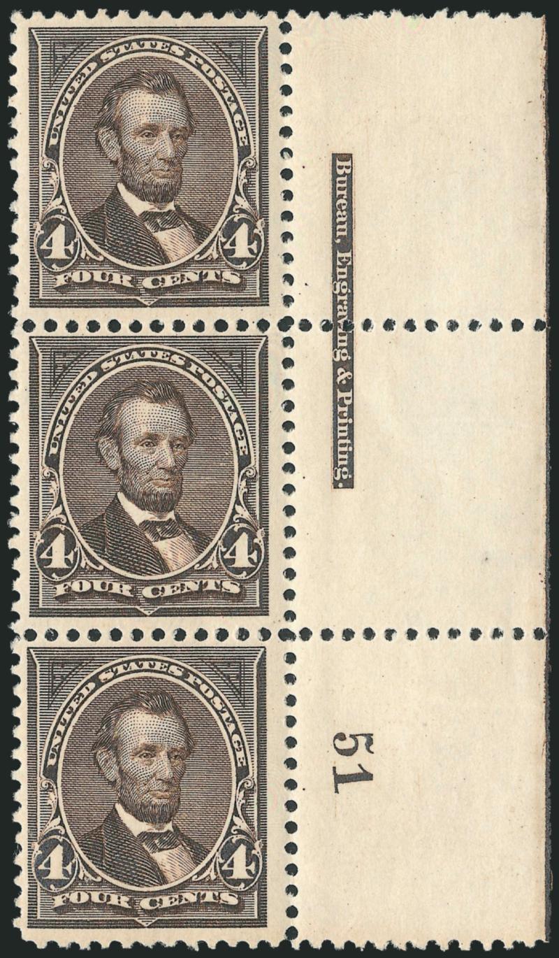 Ex Hind. The only other example of this rare variety we have offered since keeping computerized records is the top imprint and plate number strip of three sold in our 2009 Whitpain sale. (Image)