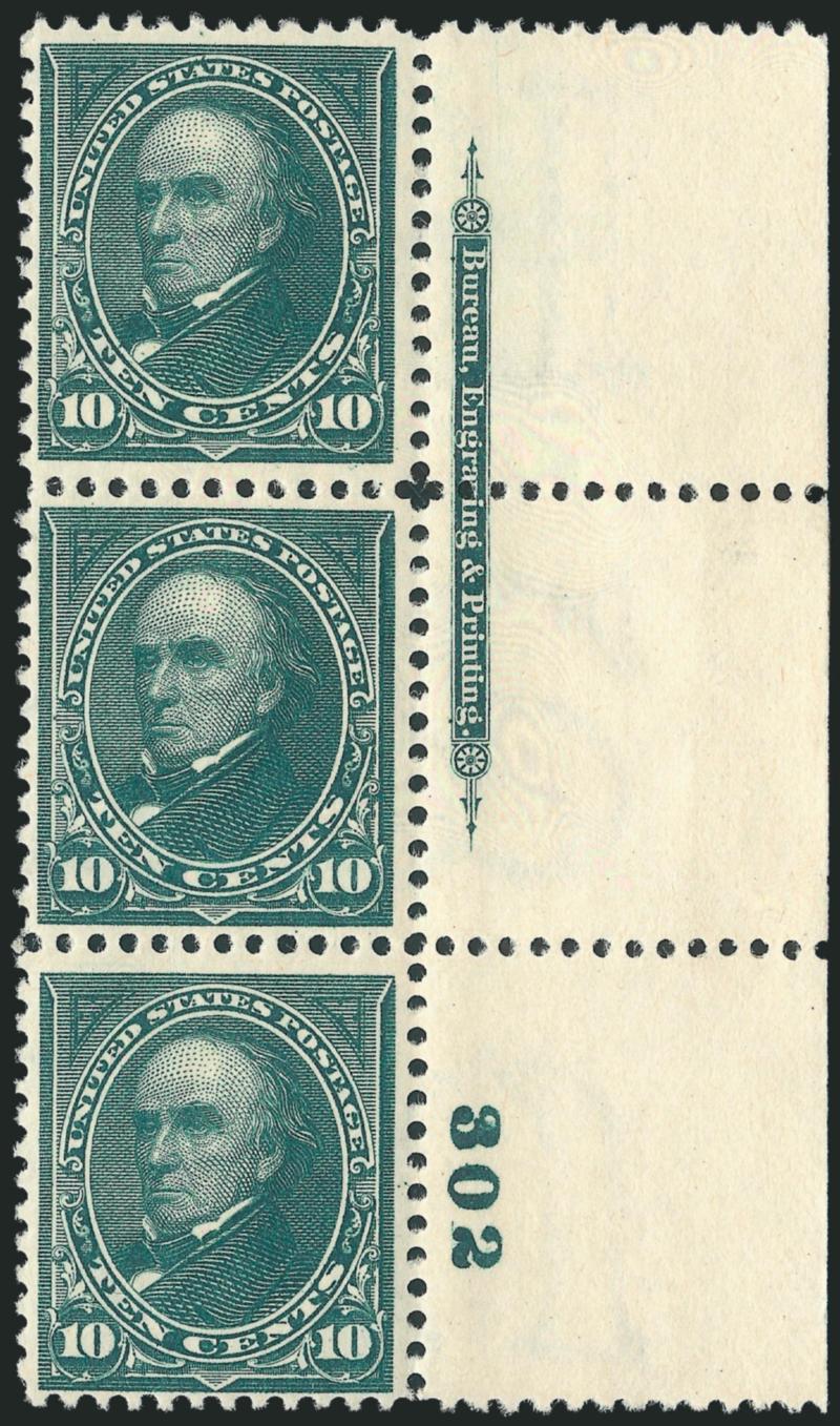 679 og Image10c Dark Green (273). Right imprint and plate and no. 302 strip of three, stamps Mint N.H., h.r. in ungummed selvage, rich color, choice centering, fresh and Very Fine, Scott Retail as Mint N.H. singles (Image)