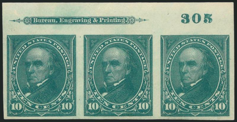 680 ng Image10c Dark Green, Imperforate (273a). Top imprint and plate no. 305 strip of three, unused (no gum), large margins, bright color, Very Fine, Scott Retail as gummed pair with no premium for the third stamp or position (Image)