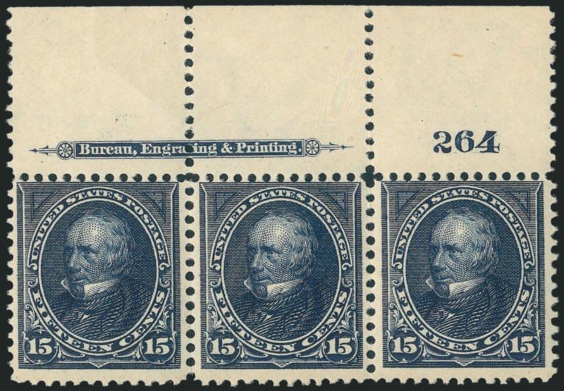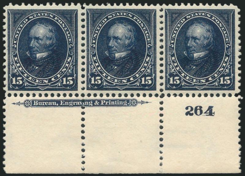 683 og Image15c Dark Blue (274). Bottom imprint and plate no. 264 strip of three, right stamp Mint N.H., left stamp barely hinged, deep rich color and proof-like impression, Very Fine and choice, Scott Retail as singles (Image)