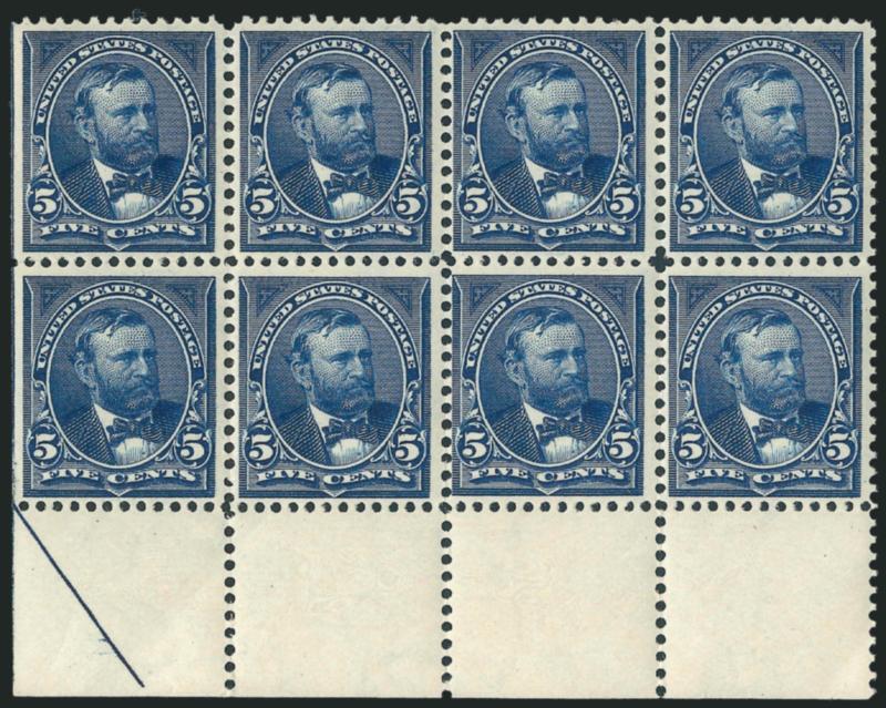 5c Dark Blue (281). Mint N.H. block of eight with wide selvage at bottom, natural s.e. at left with part arrow, rich color on bright paper, fresh and Fine-Very Fine, with 2001 P.F. certificate,