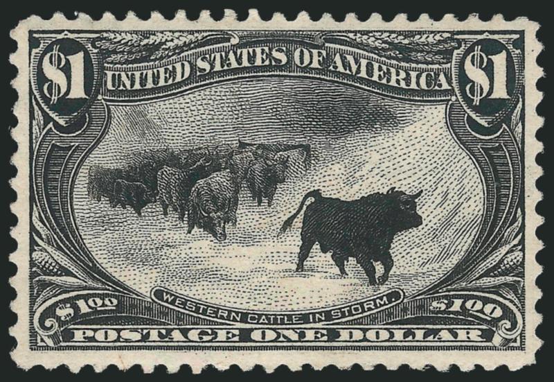 1c Trans-Mississippi (285). Mint N.H. with plate no. 710 in wide top selvage, rich color, wide and balanced margins, Extremely Fine Gem, with 2011 P.S.A.G. certificate (Image)Search for comparables at SiegelAuctions.com |