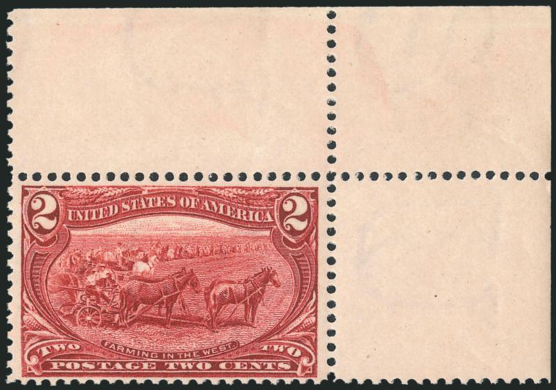 2c Trans-Mississippi (286). Mint N.H. with top right corner sheet selvage, radiant color, Very Fine (Image)Search for comparables at SiegelAuctions.com |