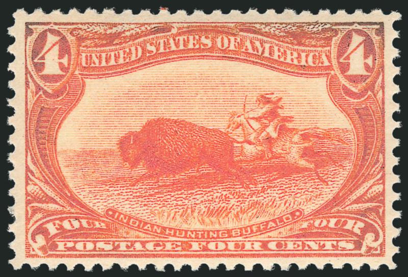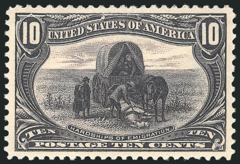 10c Trans-Mississippi (290). Barest trace of a previous hinge (Mint N.H. according to 1989 P.F. certificate), extra wide and balanced margins, precise centering on bright paper, deep rich color,