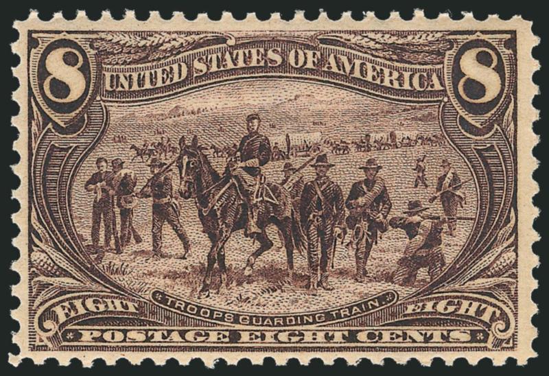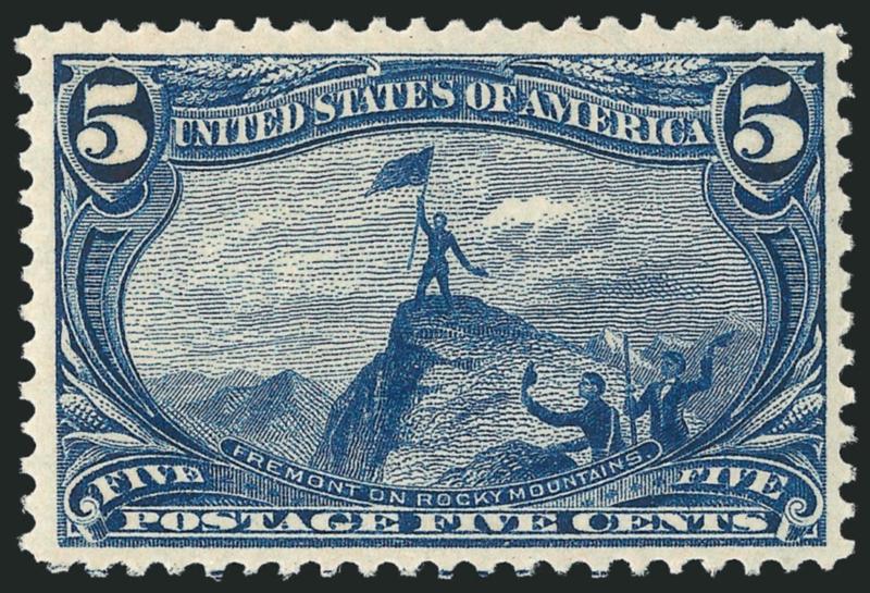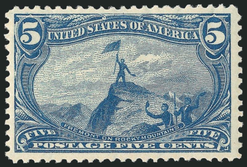 5c Trans-Mississippi (288). Mint N.H., intense shade and impression, Very Fine and choice, with 2000 and 2007 P.F. certificates (VF-XF 85) (Image)Search for comparables at SiegelAuctions.com |