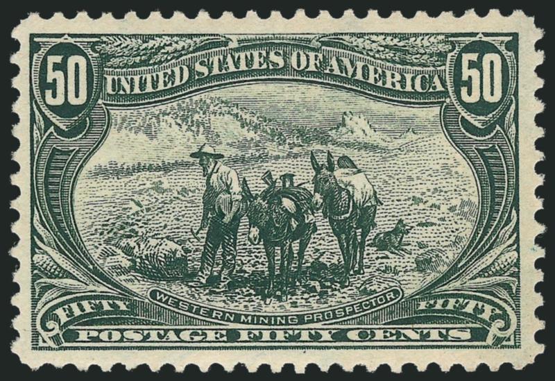 50c Trans-Mississippi (291). Mint N.H., deep rich color and detailed impression, essentially perfectly centered with wide and balanced marginsEXTREMELY FINE. A SUPERB MINT NEVER-HINGED