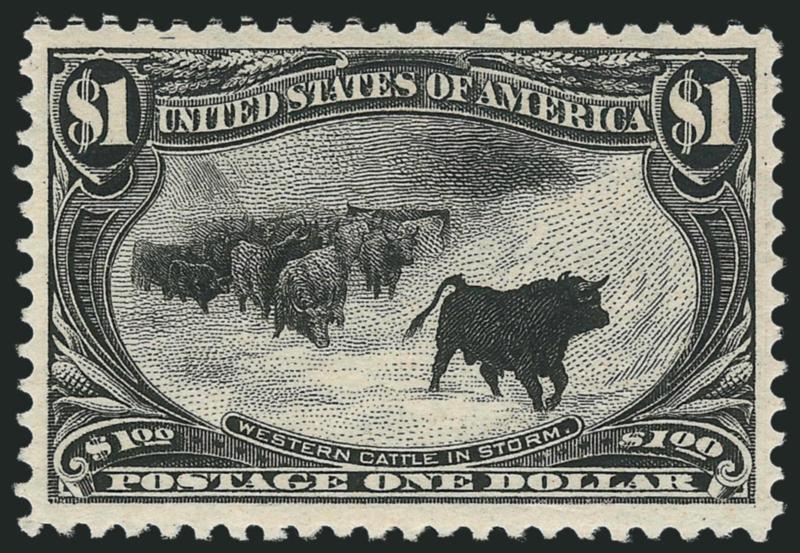 $1.00 Trans-Mississippi (292). Original gum lightly hinged, detailed impression, wide margins, Very Fine and choice, with 2011 P.S.E. certificate (OGph, VF-XF 85, SMQ $1,225.00) (Image)Search for comparables at SiegelAuctions.com |