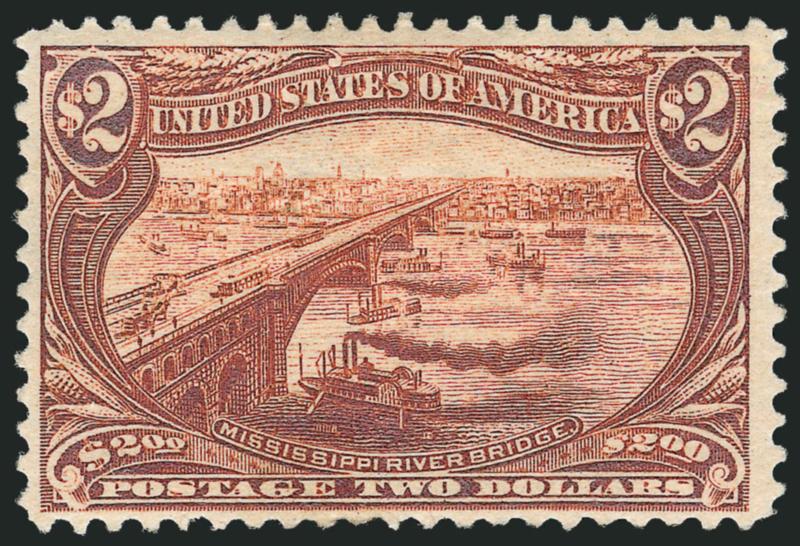 $2.00 Trans-Mississippi (293). Original gum, lightly hinged, wide margins and choice centering, deep rich colorEXTREMELY FINE. A LOVELY ORIGINAL-GUM EXAMPLE OF THE $2.00