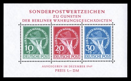 631 nh 9NB3a 9NB3a, 1948 Currency Victims souvenir sheet, wonderfully bright and fresh, o.g., n.h., very fine (Michel Block 1 Ç1,100).#9NB3a, 1948 Currency Victims souvenir sheet, wonderfully bright and fresh, o.g., n.h., very fine (Michel Block #1; €1,100). (Image) $825.00