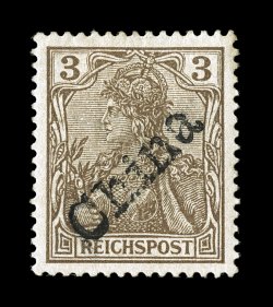635 og 17 17, 1900 3pf Brown, Tientsin provisional handstamped China, outstanding centering, rich color, o.g., minor h.r., very fine an especially choice example of this scarce stamp