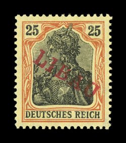 BPP (Michel 5Bb Ç600).#1N5, 1919 25pf Orange and black with red "LIBAU" overprint, extraordinarily well centered, bright and fresh, o.g., lightly hinged, very fine; only 300 printed; signed Hochstadter BPP (Michel #5Bb; €600). (Image) $375.00