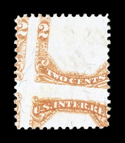 most unusual eye-catching error that is rarely offered ex-Turner.#R135 var., 2c Orange and black, frame printed on the back, with the frame being misplaced as always, 1873 ms. cancel of the front, light horizontal crease, otherwise fine; a most unusual eye-catching error that is rarely offered; ex-Turner. (imagea) (Image) $1,600.00
