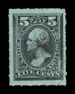 761 O RB16c RB16c, 5c Black, roulette 6, huge margins, strong color, faintly cancelled, small thin, otherwise very fine.#RB16c, 5c Black, roulette 6, huge margins, strong color, faintly cancelled, small thin, otherwise very fine. (Image) $1,750.00