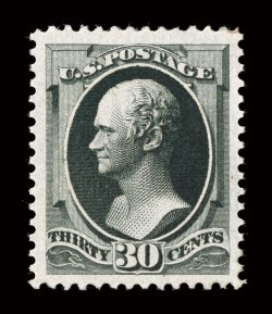 paper, o.g., lightly hinged, extremely fine.Both the 15c and, to a le#190, 30c Full black, enormously large margins all around and being incredibly well centered within these impressive borders, especially intense color and impression on fresh paper, o.g., lightly hinged, extremely fine.Both the 15c and, to a lesser extent, the 30c 1879 American Bank Note issues are values from the series that seem to be more readily available in nice collectible condition than others. However, the real challenge is to find one that is not just "another" example, but one that really stands out in terms of its overall condition and eye appeal. The example offered here of the Thirty Cent value is one such exception to the rule, as its centering and size of margins are truly amazing. Plus, it possesses an overall freshness and brilliance few others boast. It clearly ranks among the finest original gum examples available.Accompanied by 1989 and 2005 PF certificates; ex-Zoellner. (Image) $1,100.00
