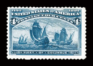 1233 nh 233 233, 4c Columbian, marvelously well centered and margined, strong rich color and impression on bright paper, o.g., n.h., extremely fine a handsome gem 1996 PF