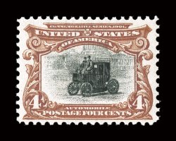 wonderfully choice stamp 2000 PF certificate.#299, 10c Pan-American, gem mint example, featuring outstanding centering within uncharacteristically wide margins, strong rich colors, unblemished o.g., n.h., extremely fine; a wonderfully choice stamp; 2000 PF certificate. (Image) $375.00