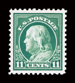 $800.00).#511, 11c Light green, precisely centered within exceptionally large margins, bright fresh color, pristine o.g., n.h., an extremely fine gem; 2008 PSE certificate (Superb 98; SMQ $800.00). (Image) $20.00