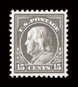 $830.00).#514, 15c Gray, exceptionally large and wonderfully well balanced margins all around, strong rich color, o.g., n.h., extremely fine; 2008 PSE certificate (XF-Superb 95; SMQ $830.00). (Image) $85.00