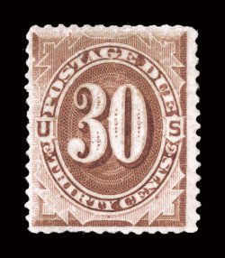 appearance a very rare postage due, with only 179 copies sold 2007 PF ce#J13, 30c Deep brown special printing, unused, strong color, regummed over a small crease and closed tear, also a tiny facial scrape that is painted over, nearly very fine appearance; a very rare postage due, with only 179 copies sold; 2007 PF certificate. (Image) $8,500.00