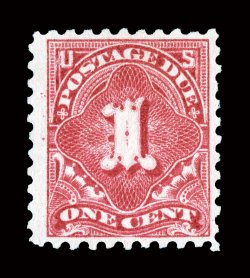 extremely fine and exceedingly choice 2001 PF certificate.#J22, 1c Bright claret, pristine mint single, well centered within uncharacteristically large margins, gorgeous rich color on bright white paper, flawless o.g., never hinged, extremely fine and exceedingly choice; 2001 PF certificate. (Image) $95.00