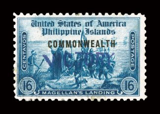 redistributed over a trivial crease, fine appearance 1994 PF certific#C16, 26c Blue green, with Madrid-Manila air post ovpt., we have a second example of this rare stamp, deep intense color, typical centering for this rarity, o.g. that has been redistributed over a trivial crease, fine appearance; 1994 PF certificate. (Image) $6,250.00