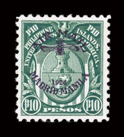 just slightly tropicalized, very fine only 500 printed.#C15, 10P Deep green, with "Madrid-Manila" air post ovpt., well centered which is most uncharacteristic of this stamp, deep luxuriant color on pristine paper, full o.g. that is just slightly tropicalized, very fine; only 500 printed. (Image) $1,350.00