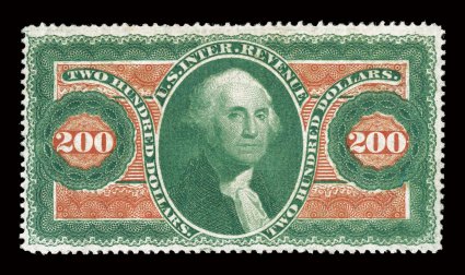 1989 O R102c R102c, $200.00 Internal Revenue, brilliant colors, light embossed cancel (appears unused), very fine an attractive example of this high value.#R102c, $200.00 Internal Revenue, brilliant colors, light embossed cancel (appears unused), very fine; an attractive example of this high value. (Image) $900.00