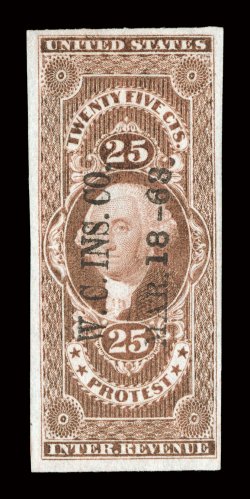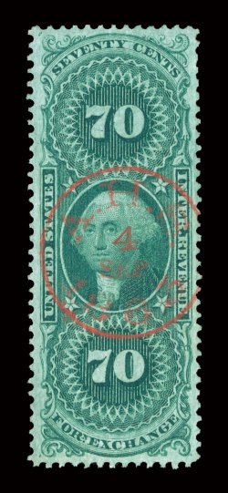 very light and neat manuscript cancel, extremely fine a fabulous quali#R101c, $50.00 U.S.I.R., used, flawlessly centered amid uncharacteristically large margins, strikingly intense color and a razor-sharp impression on wonderfully bright paper, very light and neat manuscript cancel, extremely fine; a fabulous quality example, easily being the finest quality example we have ever offered; 2002 PF certificate. (Image) $150.00