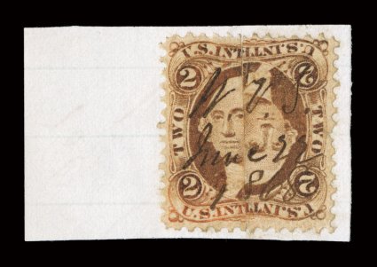 discovery copy of this particular railroad cancel.#R102c, $200.00 Internal Revenue, fresh colors, cancelled by Philadelphia & Reading railroad ms. cancel (Tolman type P-6H), minor wrinkling, otherwise fine; this was the discovery copy of this particular railroad cancel. (Image) $900.00