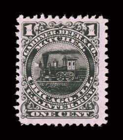 2101 O RO86c RO86c, Gardner, Beer & Co., 1c Black, pink paper, beautiful color and highly detailed impression, fine.#RO86c, Gardner, Beer & Co., 1c Black, pink paper, beautiful color and highly detailed impression, fine. (Image) $350.00