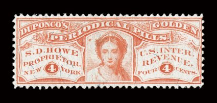 2155 O RS135b RS135b, Howe, S. D., 4c Red, silk paper, well centered, bright color, very fine.#RS135b, Howe, S. D., 4c Red, silk paper, well centered, bright color, very fine. (Image) $425.00