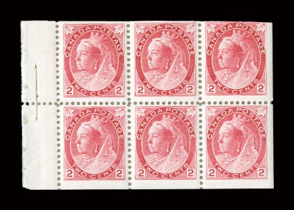 also the first ever booklet of the entire British Commonwealth.Unitrade #BK1, 1900 Booklet of two panes of #77b, unexploded booklet, with both panes quite fresh, o.g., n.h., a very fine example of not only the first Canadian booklet, but also the first ever booklet of the entire British Commonwealth. (Image) Unitrade C$4,500.00