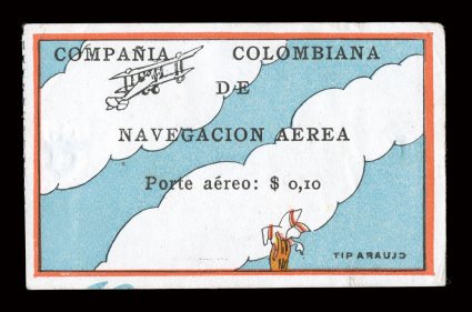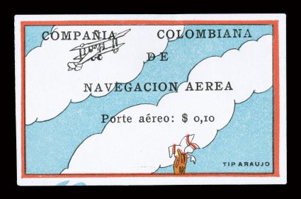 around, brilliant colors, extremely fine signed H. Bloch and accompanied#C5, 1920 10c Flier in plane air post, without gum as issued, an exceedingly choice example of this rare and colorful stamp, featuring uncommonly large balanced margins all around, brilliant colors, extremely fine; signed H. Bloch and accompanied by a 2004 Rendon certificate. (Image) $3,250.00