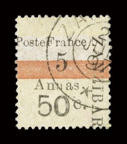 (Yvert 46 Ç4,000).#38, 1897 5a & 50c Red on straw, Yvert type IV, light c.d.s. postmark, uncommonly fresh, very fine; an impressive example of this rare stamp; signed A. Brun, Calves and others (Yvert #46; €4,000). (Image) $3,250.00