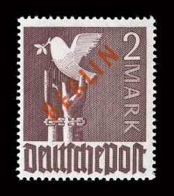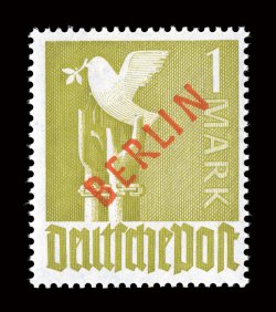 (Michel 21-33, 34VII Ç2,100).#9N21-34, 1948-49 2pf-2M Red overprints cplt., with the 2M being Michel #34VII, bright and fresh, o.g., never hinged, very fine; 2004 H.D. Schlegel certificate for the set (Michel #21-33, 34VII; €2,100). (imagea) (Image) $1,250.00