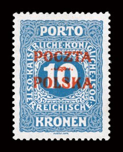 2659 og J10 J10, 1919 10K Ultramarine postage due with Cracow overprint, an extraordinary quality mint single of this enormous rarity, being perfectly centered within large margins,