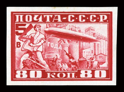 luxuriant colors and deeply etched impressions, full o.g., trivial h.#224, 1922 20R on 15k Red brown and deep blue, imperforate, an incredibly rare mint horizontal pair, being positions 8-9 from the sheet, large balanced margins all around, rich luxuriant colors and deeply etched impressions, full o.g., trivial h.r., extremely fine; even a single example of this stamp is very scarce, but a multiple of any size is a true rarity, and given the current vibrancy of the Russian market, we expect the hammer price to bear little resemblance to the current Scott catalog value; 1993 Mikulski certificate (Michel #202BI; €8,000+). (Image) $3,000.00+