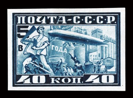 signed H. Bloch and Soviet Philatelic Association (Michel D5 Ç600).#CO5, 1922 1200M on 10k Air post official, type II surcharge, flawlessly centered, bright and fresh, o.g., faintly hinged, extremely fine; a gem example of this elusive stamp; signed H. Bloch and Soviet Philatelic Association (Michel #D5; €600). (Image) $700.00