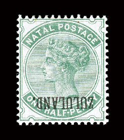 2778 og 12c 12c, 1888 12p Green, with inverted Zululand overprint, choice example of this rare variety, lovely rich color on bright crisp paper, well centered, o.g., lightly hinged, very