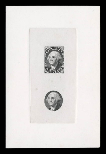 fine.#9X1P1b, New York, N.Y. Postmaster Provisional, large die proof on India, dot in "P" and Scar variety, in black, die sunk on card measuring 101x153mm, showing full die sinkage, very fine. (Image) $525.00