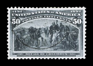 2008 PSE certificate (XF 90 SMQ $455.00).#240, 50c Columbian, used, excellent centering within large margins, lovely rich color on bright paper, very light cancel, tiny corner perf. crease, otherwise extremely fine; 2008 PSE certificate (XF 90; SMQ $455.00). (Image) $180.00