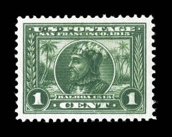 impression, pristine o.g., n.h., an extremely fine gem for the most dem#397, 1c Panama-Pacific, a magnificent mint example that is perfectly centered amid especially large margins, in addition it possesses beautiful rich color and an outstanding impression, pristine o.g., n.h., an extremely fine gem for the most demanding collector; 2001 PF certificate and a 2004 PSE certificate (Superb 98; SMQ $1,200.00). (Image) $42.00