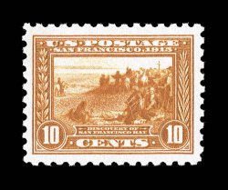 paper, unblemished o.g., n.h., an extremely fine gem for the most fast#400, 10c Panama-Pacific, orange yellow, pristine mint single, precisely centered within large margins, truly radiant color which is wonderfully contrasted by its bright white paper, unblemished o.g., n.h., an extremely fine gem for the most fastidious collector; 1999 PF certificate; ex-Lyons. (Image) $300.00