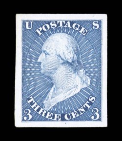 margin at left, extremely fine appearance clear 1984 PF certificate.#8A, 1c Blue, Ty. IIIa, exceptionally large margins on all four sides, deep rich color and a wonderfully detailed impression, light town c.d.s., tiny scissor cut in the bottom margin at left, extremely fine appearance; clear 1984 PF certificate. (Image) $1,200.00