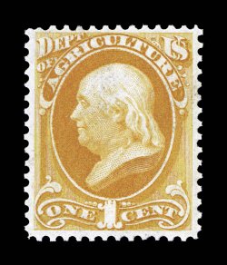 808 nh O1 O1, 1c Agriculture, fresh mint single, bright color, nicely margined, o.g., n.h., very fine 2004 PF certificate.#O1, 1c Agriculture, fresh mint single, bright color, nicely margined, o.g., n.h., very fine; 2004 PF certificate. (Image) $600.00