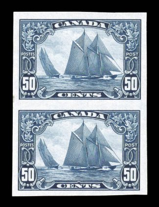 C$700.00).#158, 1929 50c Dark blue "Bluenose", well centered and margined, strong rich color on pristine white paper, o.g., n.h., very fine; 2004 Greene Foundation certificate (Unitrade C$700.00). (Image) $400.00